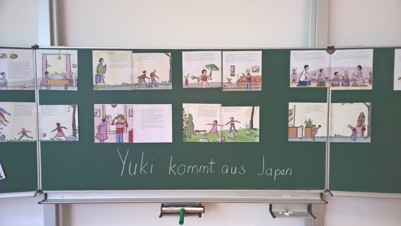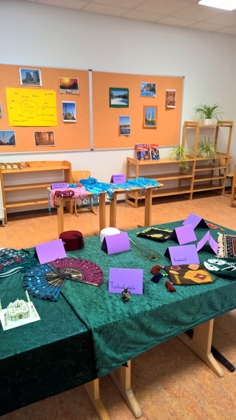 "Bunt wie der Regenbogen" - so hieß das Motto unseres diesjährigen Schulfestes. In einer Projektwoche haben sich unsere Klassen mit unterschiedlichen Ländern beschäftigt und dazu Länderstationen mit Ausstellungen und Plakaten für das Schulfest vorbereitet.